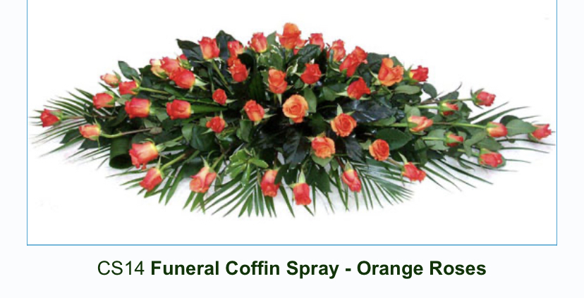 / Funeral Coffin Spray Orange Roses