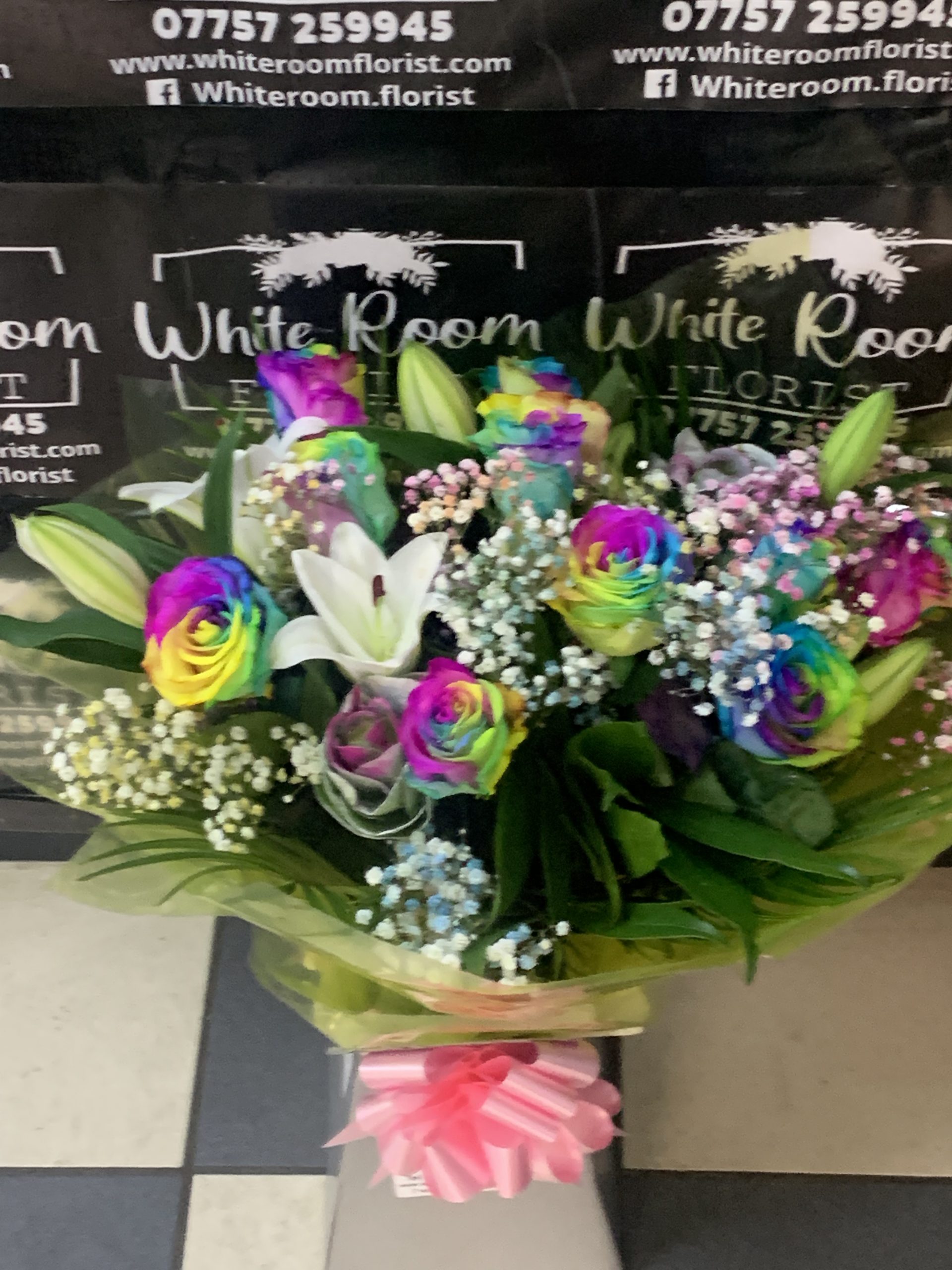 Roses | 6 Roses rainbow roses 3 stems Lilly, 12 Roses rainbow roses 6 Lilly bouquet, 18 Roses 9 stems Lillys, 24 Roses 12 Lilly |